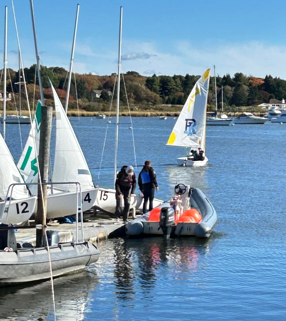 A beautiful fall day for sailing out of the URI boathouse into Salt Pond. However, I also remember a chilly November day long ago when we “crashed and burned,” turtling the 470 and winding up in the water for about an hour or so. Did I mention November?