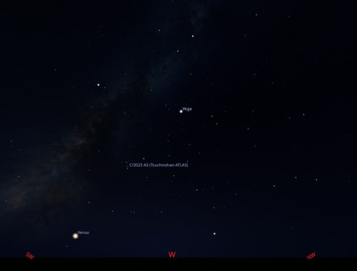I went looking for this rapidly vanishing comet (Tsuchinshan-ATLAS) the other night. No luck. Tonight is probably the last chance to see it before it heads back into very deep space. Judging from this recent image from Stellarium, it’s going to be tough to see. And I can’t wait another 80,000 years for its return so, Sunday night is one last search with my binoculars and night-sky phone app.